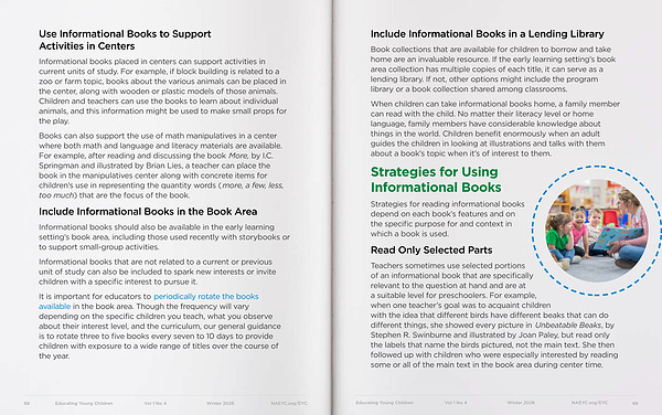 When following whole-group interactive read alouds, small groups empower young children to become active and thoughtful participants in their literacy development. During this time, educators should target specific skills. They can decide which ones to focus on by considering a child’ s current skills and knowledge, individual strengths and areas for growth, and the broader curriculum and learning goals. The book they read will also guide their planning: A rhyming book, for example, is great for teaching phonological awareness skills; a complex story can target vocabulary and content knowledge and reading comprehension.