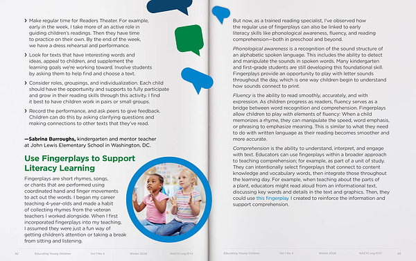 Editors’ Note: Literacy learning begins at birth and continues throughout our lives. Birth to age 5 is a critical period in building the foundation for later success in reading and writing. Educators play a vital role in nurturing young children’ s early language and literacy knowledge and skills. However, the specific practices that support literacy development in early childhood are often different than those used with older children.