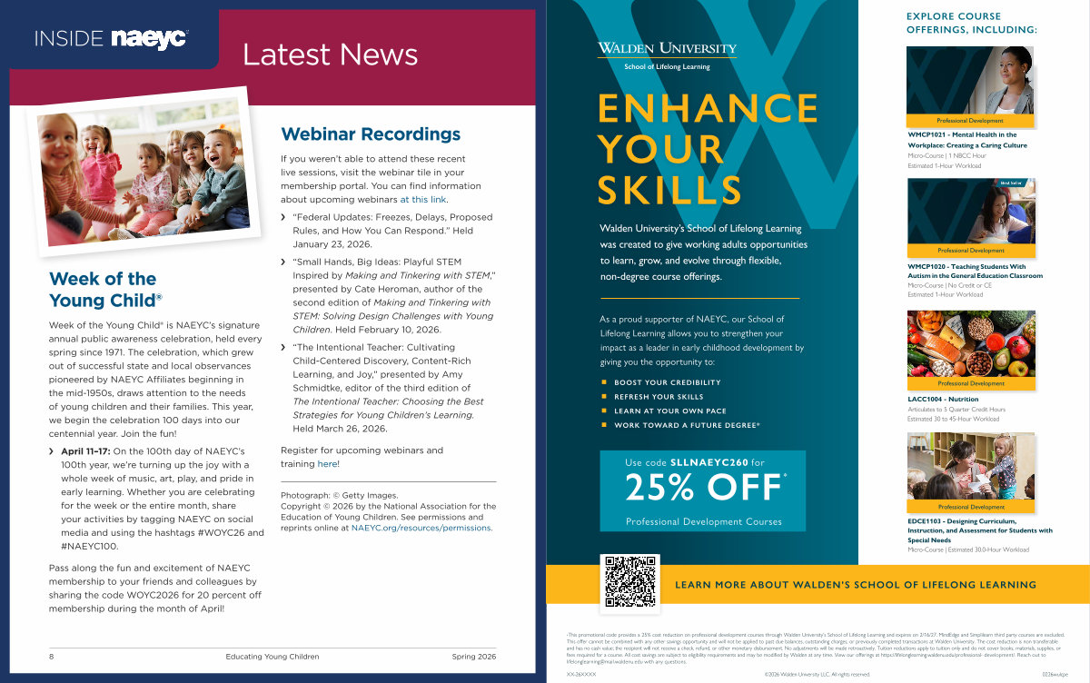 As a proud supporter of NAEYC, our School of Lifelong Learning allows you to strengthen your impact as a leader in early childhood development by giving you the opportunity to: