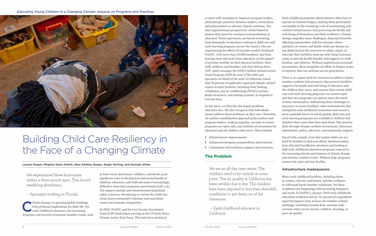 In 2022, NAEYC and the Low Income Investment Fund( LIIF) both began serving on the US Early Years Climate Action Task Force. This task force produced